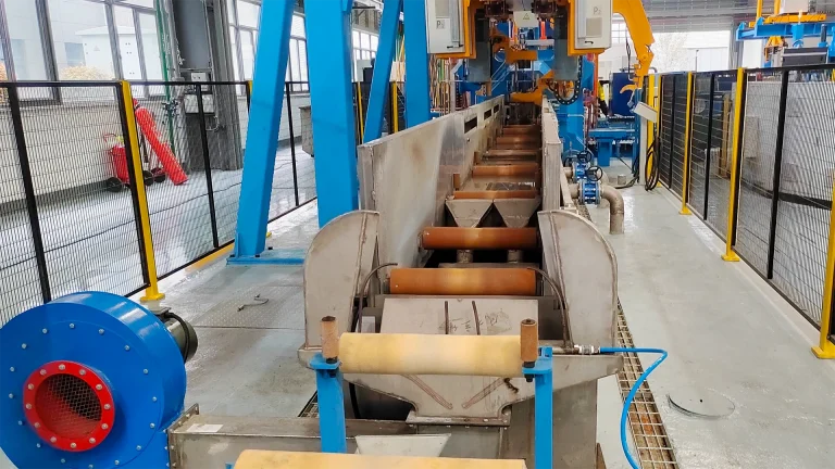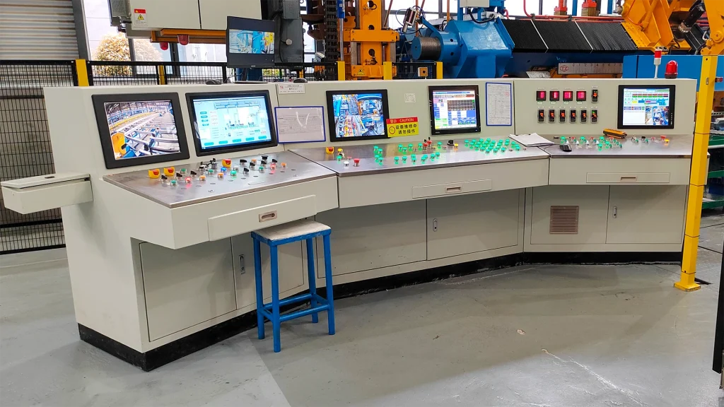 1、 淬火系统两侧水刀积水,可满足铝棒材在线驻波淬火工艺,水槽内设置搅拌水嘴,可提高淬火速率,水泵变频控制可根据产品米重等调整水量,降低能耗;