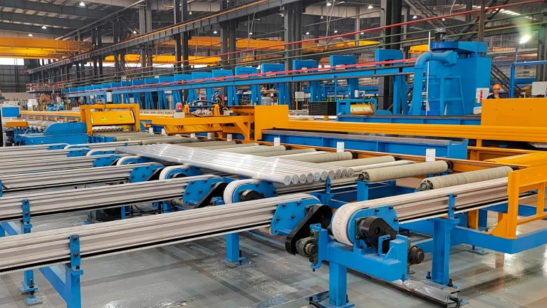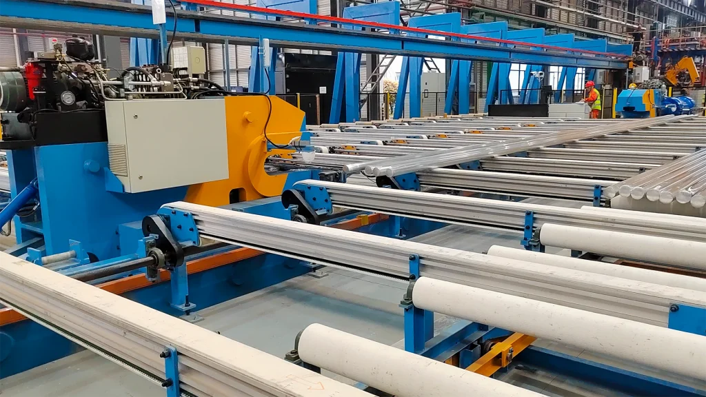 4、 横纵向搬运系统可根据型材米重等特征选配不同输送形式,可实现分段自动控制,降低能耗;