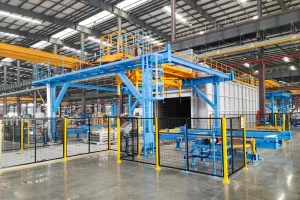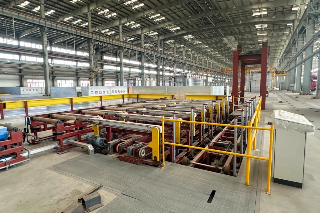 1、 实现三层叠框、两组并列进入时效炉;